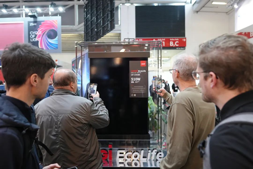 本次Intersolar首发的组件版型为54双面优选版型,专为住宅应用场景设计,最大功率输出高达510W,每平方米功率比达到250W/m²。与当前TOPCon组件相比,同等面积之下,EcoLife系列输出功率高出40W,由此带来屋顶安装容量提升高达9%。