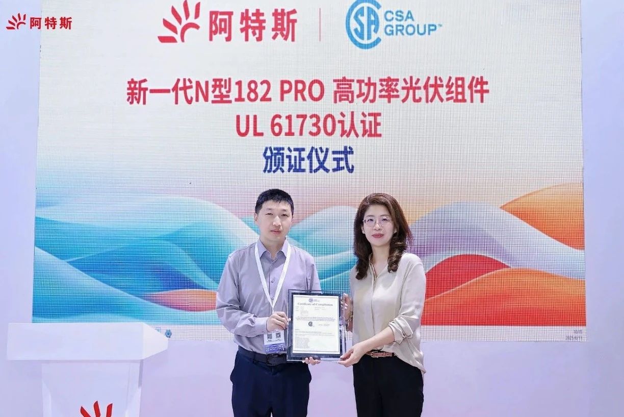 新一代N型182 PRO高功率光伏组件获CSA UL 61730认证颁证仪式