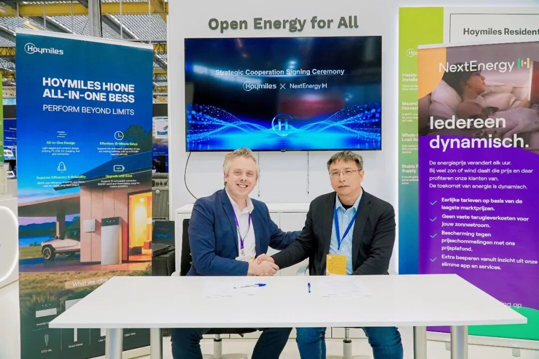 展会现场,禾迈分别与NextEnergy和VDH Solar签署战略合作协议。NextEnergy是荷兰领先的动态电价能源服务商,致力于通过实时电价与智能能源管理技术,帮助用户实现更高效的用能优化。通过此次合作,禾迈储能系统将接入动态电价服务体系,能够根据电力市场价格变化进行智能充放电调度,帮助家庭用户在低价时储能、高价时用电,从而有效降低能源成本并提升系统投资回报率。