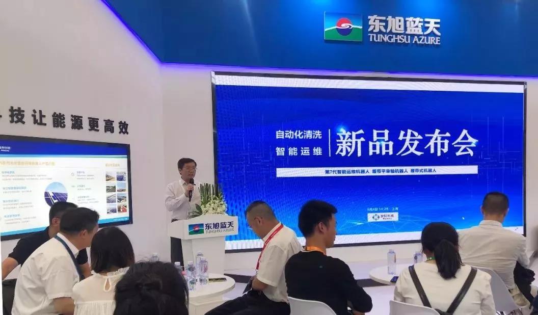 东旭蓝天执行副总裁、安轩科技董事长邓新贵在发布会上致辞,光伏行业是造福人类的伟大事业,在行业运维步入后运维时代今天,安轩科技以推动智能化运维机器人产品的发展推动光伏行业高质量发展。