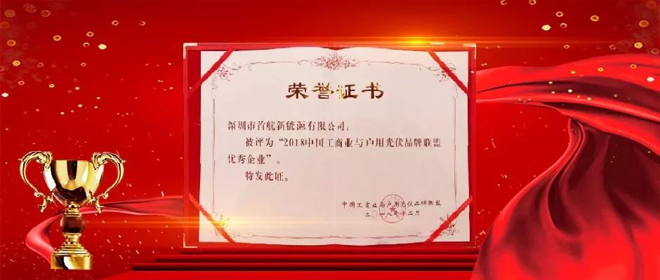 首航斩获“2018中国工商业与户用光伏品牌联盟优秀企业”殊荣