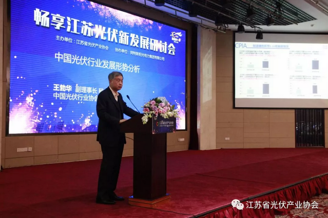 协会理事长瞿晓铧发表《共建江苏光伏迎向美好明天》主题演讲