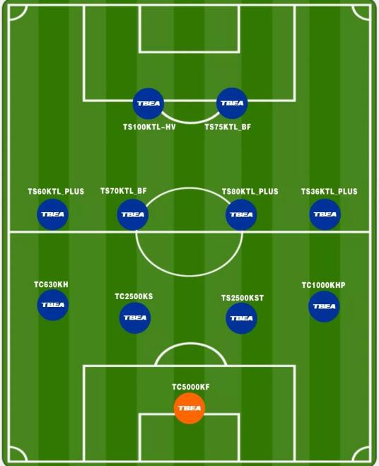 如果按足球比赛的规则,特变电工全系列的产品机型完全可以排出多套以上首发阵容,这次我们选了实力最强的一套4-4-2阵型的首发阵容,让大家一睹风采,如上图所示。