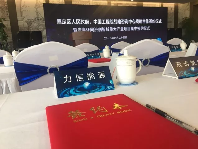 2018年6月23日上午,力信能源受邀参加嘉定区人民政府与中国工程院战略咨询中心战略合作签约仪式,暨安亭环同济创智城重大产业项目集中签约仪式,研究院院长程君代表公司参加会议并签署入驻协议。