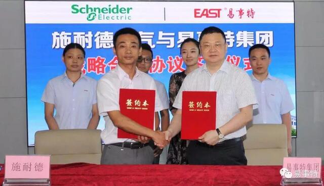 2017年,易事特集团与施耐德电气签署战略合作协议,双方建立全面战略合作伙伴关系,在产品研发、技术应用、业务拓展、人才培养、学术交流等方面开展全方位的合作,建立紧密联系的创新与合作机制,共享系统集成研发、行业应用经验,共同推进智慧能源领域业务的创新发展。施耐德为易事特导入先进的智能制造方法论、实施工具库和全系列产品,并通过培训和咨询等手段提升劳动力素质,为易事特智能电网等智慧能源业务提供优质的产品、解决方案和技术支持,在全球范围内提供完善的本地化服务保障,促进易事特国内外业务的发展,同时在全球范围内提供完善的本地化服务保障。