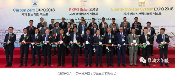 2018世界太阳能博览会(EXPO Solar 2018)于6月14日至16日在韩国首尔国际会展中心(KINTEX)盛大举行。作为韩国首屈一指的专业光伏展会,影响力辐射至亚洲及中东地区,今年是晶澳太阳能第五次参展。晶澳太阳能董事长兼首席执行官靳保芳先生受邀出席剪彩仪式,与韩国政府领导及重量级参展企业代表共同见证了开幕式,并一同前往晶澳展台参观新产品,交流新技术。