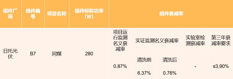 高可靠性、高寿命一直是日托光伏是六大价值主张的核心要义,实现组件优异衰减控制,保证组件高效稳定发挥是日托MWT组件优势所在。按照领跑者项目要求,项目组件衰减率应满足首年不超过2.5%(多晶)、3.0%(单晶),之后每年衰减率不高于0.7%。截至2019年,大同基地各项目并网运行进入第三年,多晶和单晶组件衰减率要求分别为3.9%和4.4%。下表中截取了MWT 多晶组件2019年9、10、11月份的名义衰减率数据: