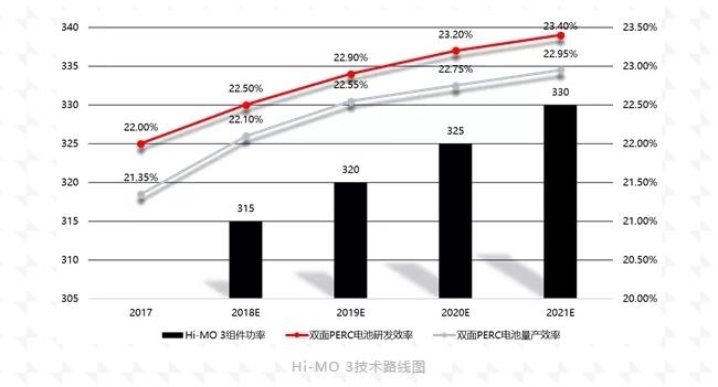 隆基乐叶光伏Hi-MO系列一直凭借高功率、低衰减、高发电量引领行业单晶PERC技术的发展,Hi-MO 3双面半片PERC组件结合了当前先进的单晶PERC电池技术以及半片、双面的组件封装技术,在继承Hi-MO 2低衰减、背面高增益优异性能的同时,将正面效率推高至320W,为行业提供了更低度电成本的全新选择。