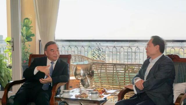 在拜会马克里总统前,宋志平一行拜访了中国驻阿大使官邸,受到杨万明大使的热情接待,双方就在阿开展“三新”产业投资充分交换了意见。杨万明对中国建材集团“走出去”步伐表示赞赏,并希望集团能够继续发挥综合优势,在阿规范经营,细致稳步开展各项业务。