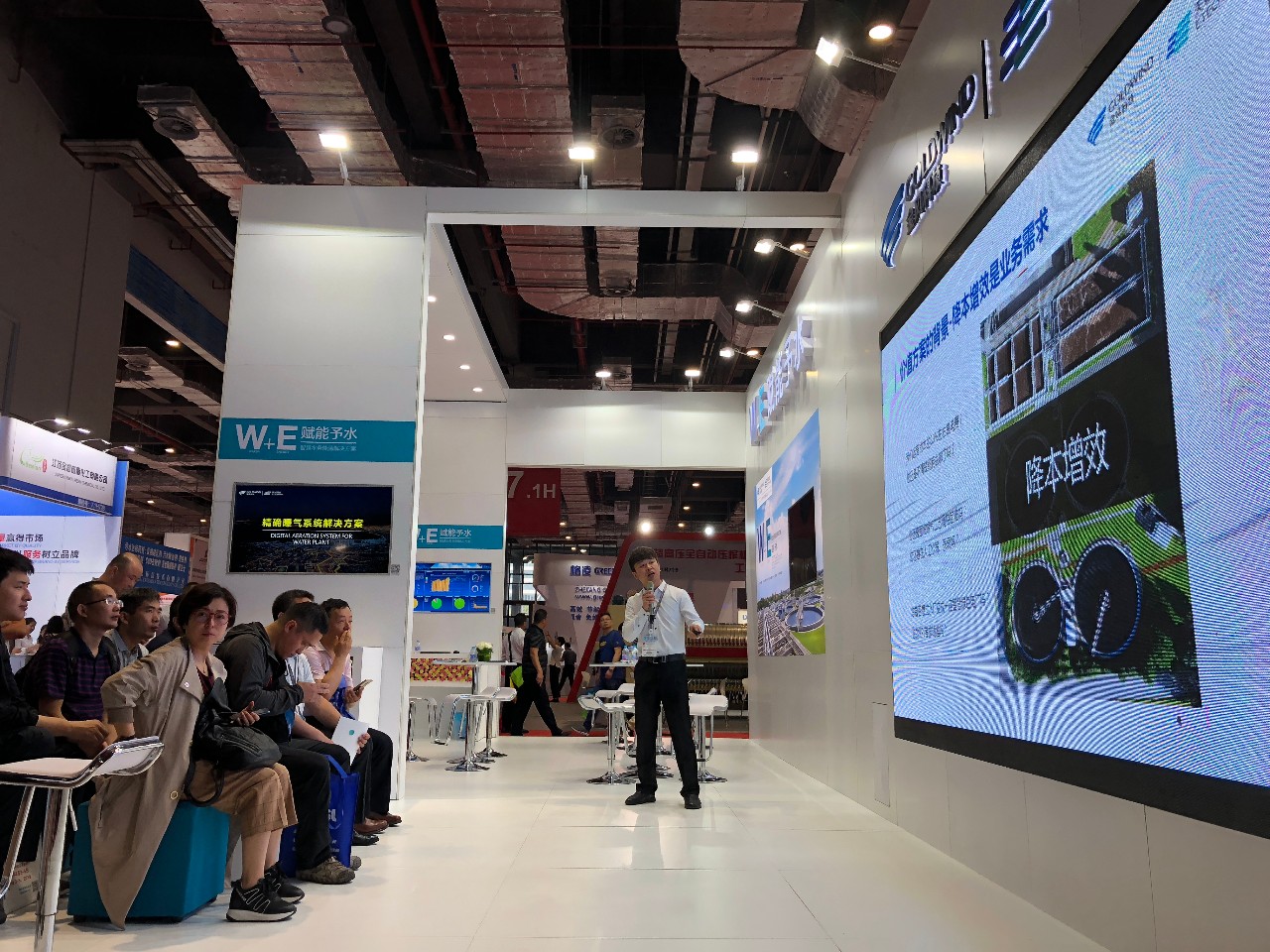 展会期间,金风科技全资子公司北京天诚同创电气有限公司(下称“天诚同创”)的技术专家还举行了“赋能予水——W+E水务智慧能源解决方案”、“基于数学模型的水厂节能——精确曝气”、“水厂能源管理的‘火眼金睛’——能效平台”等多场主题演讲,就智慧能源在水务行业领域的技术应用和经典案例进行了精彩分享。