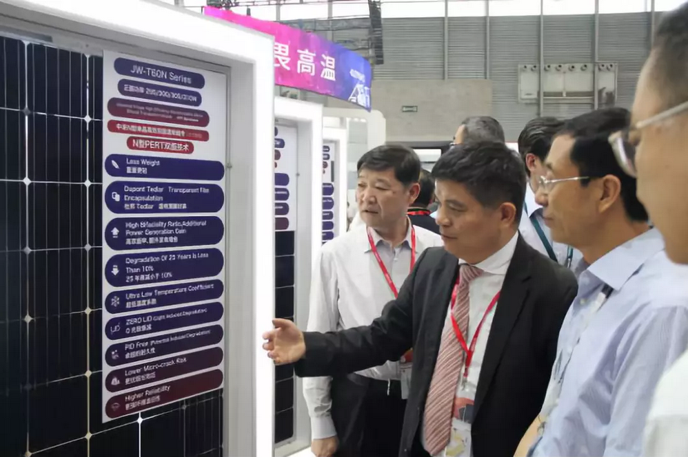 在N型高效双面电池展示区,林建伟介绍到,目前在国家电投电站项目中大规模使用的中来光电N-PERT电池量产效率已经达到21.7%,而IBC电池最高量产效率则突破了23%;此次展会新推出的TOPCON电池,量产效率比N-PERT提高了0.9%之多,年底可再提升0.4%至23%。此外,中来光电将继续加大N型高效双面电池的研发投入,深化与国家电投的合作,共同推动N型双面电池的大规模产业化应用。