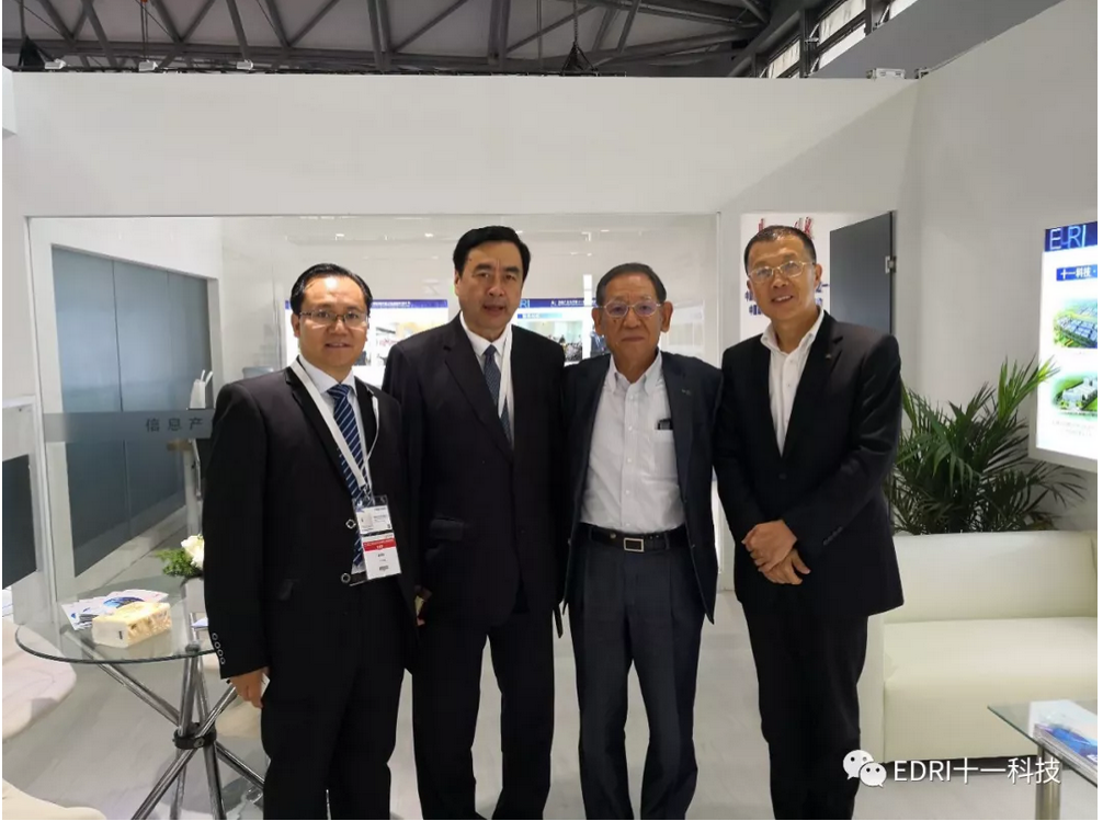 通威集团董事局主席刘汉元来到十一科技展台,参观询问,引起了展台的轰动,赵振元同志热情接待了刘主席一行,双方亲切交流,将继续延伸相互的合作,并合影留念。