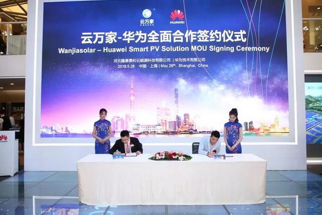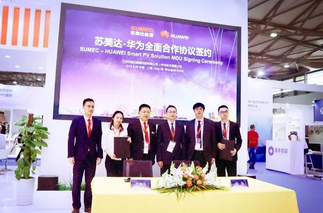 2018SNEC期间,全球智能光伏领导者华为与顺宇洁能科技股份有限公司、河北隆基泰和云能源科技有限公司、三亿屋新能源有限责任公司、北控清洁能源集团有限公司、北京同创互达科技有限公司、西班牙Grupotec公司、山东大海集团有限公司、江苏苏美达能源控股有限公司、中国电建集团贵州工程有限公司、熊猫绿色能源集团公司等达成全面合作,并在展台上举行了隆重的全面合作签约仪式。