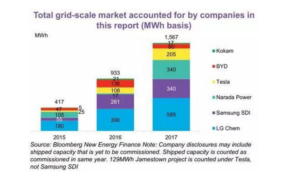 彭博新能源财经BNEF自2015年以来,追踪了全球1.6GW的已投运的电网级储能项目。其专有的能源储能数据库已发布1600余个超过500kWh的项目。