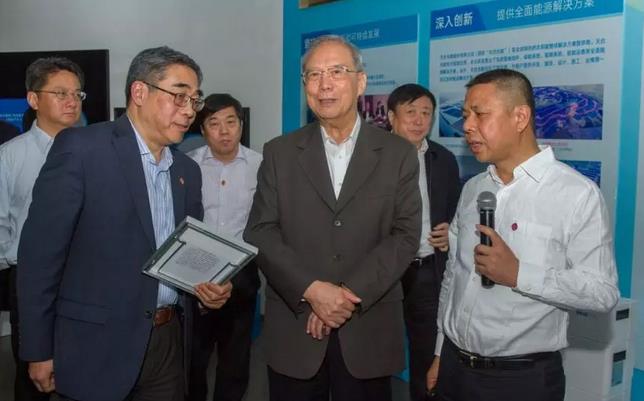 在天合光能智慧能源展厅,高纪凡向曾培炎介绍了天合光能的发展历程及光伏产业的整体发展趋势。