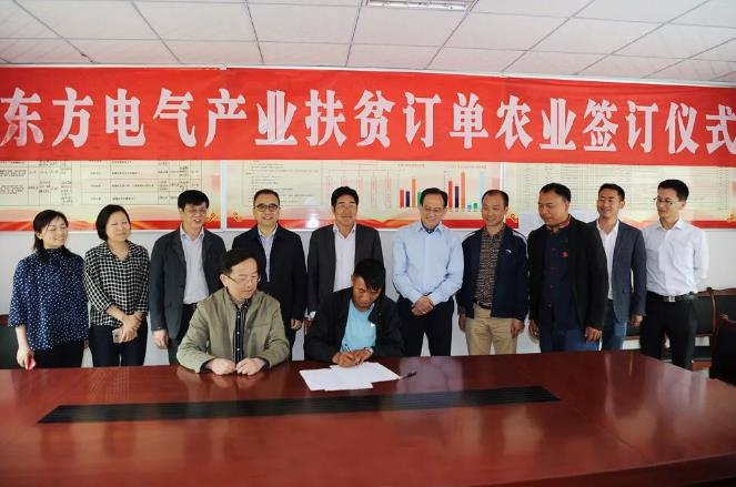 东方电机党委书记、董事长、东方风电党委书记刘辉与定点帮扶乡特布洛乡党委书记马比小龙签订了第一批农特产品订单