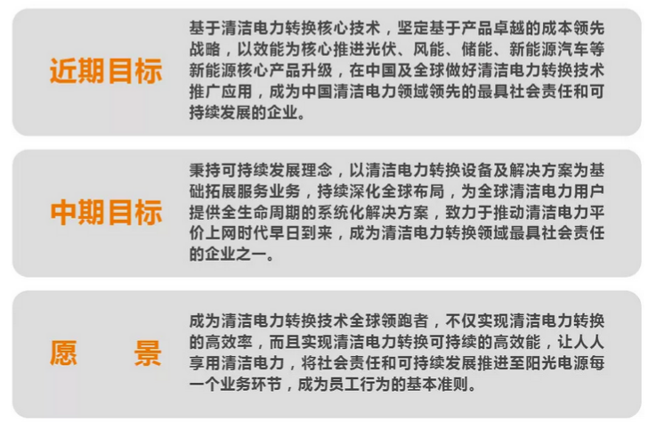 公司的可持续发展目标分为近期目标、中期目标、远期目标(愿景)。