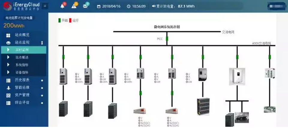 该平台主要包含数据采集模块、云存储计算、集中监视、视频监控中心、集中协调控制,智能运维、资产管理、综合评估等功能模块,可接入发电侧、配网侧、用电侧等所有配有储能系统的复合型电站,如调峰调频电站、分布式发电系统、微电网系统、大规模储能系统、通信基站、应急式移动储能电站、智能充换电站、户用系统等多种场景。