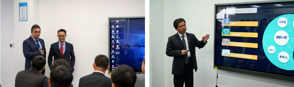 沙季耶夫一行了解了北控智慧城市一卡通公司的发展历程、应用领域、卡片文化,并到一卡通实验室体验手机支付,随后就一卡通大数据以及北控智科能源互联网公司的门头沟物联网城市项目做了重点交流。北控集团总经理助理熊斌做了关于北控集团的业务介绍。