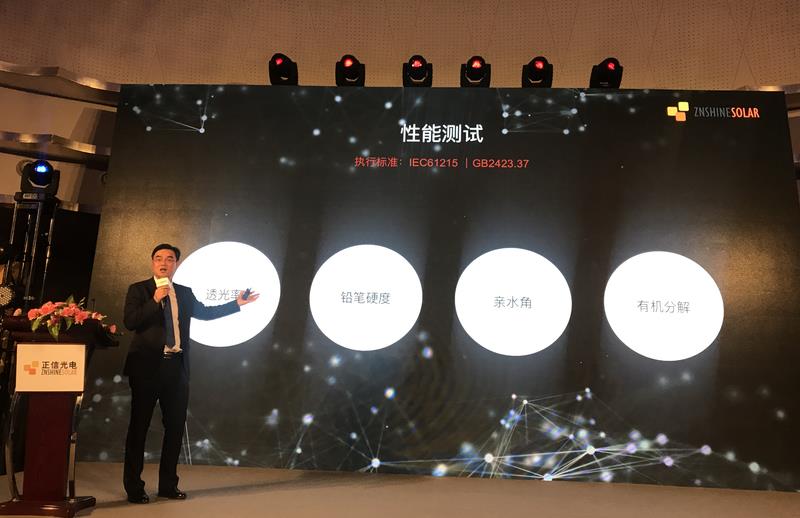 吕鹏博士则指出:“石墨烯镀膜玻璃技术是正信光电与我们中科大合作开发的成果,该技术在组件正面玻璃上的应用是我们双方达成合作后迈出的第一步。后续我们还会在双面组件背面玻璃、正面玻璃双面镀膜以及高效电池等方面展开深化合作,并向业界推出更多的新产品。”