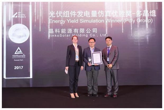 近日,在江苏无锡召开的TÜV莱茵“质胜中国”光伏盛典上,晶科能源凭借出色的发电性能与领先业内的品质标准成功荣膺多晶组发电量仿真优胜奖,位列第一名。