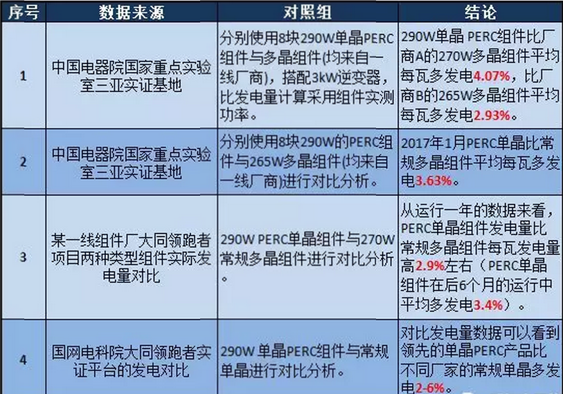 根据智汇光伏披露的数据显示,高效单晶PERC组件比常规多晶组件每瓦多发电3%左右,正在逐步成为行业主流产品,具体数据如下图。