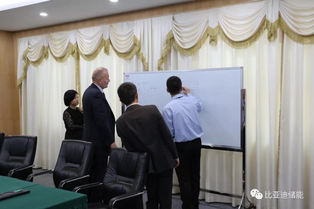 近日,比亚迪副总裁兼第十四部总经理罗红斌、电力科学研究院总工程师张子峰与英国Anesco Limited (以下简称Anesco)的执行总裁Steve Shine在比亚迪坪山总部进行会晤,对未来两年双方公司在储能业务上的合作、市场方向、产品规划做了深入的交流和探讨。