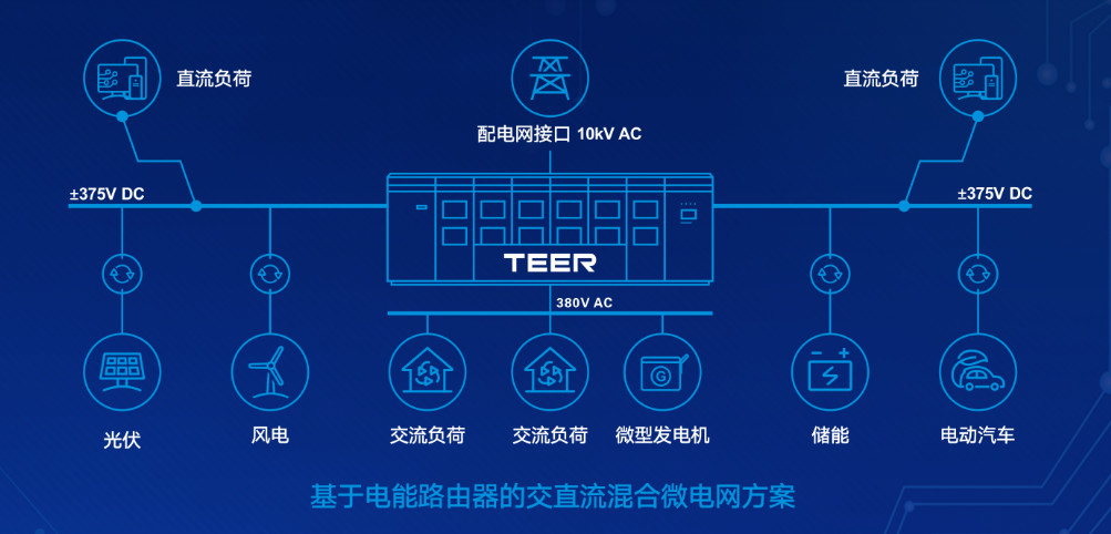 针对这些问题,特变电工新能源以电能路由器为高端技术引领,以微网云平台、能量管理系统、模块化储能系统等关键产品为核心支撑,形成“双端、三层、多场景”的智能微电网解决方案。其中,自主研发的世界首台套10kV/1MVA电能路由器,主要性能指标居于国际领先水平,可实现微电网一、二次设备的高度融合,实现“网-源-荷-储”的灵活接入与调度,可有效解决工业园区的供能问题,并可广泛推广应用于新能源并网发电、电动汽车充电站、储能电站、微电网领域。