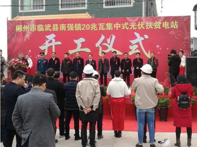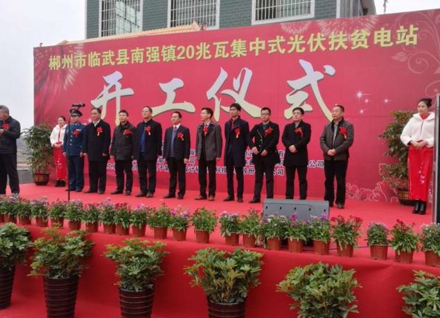 2018年2月7日上午9:58,湖南省郴州市临武县20MW地面集中式光伏扶贫电站开工典礼隆重举行。