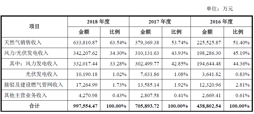 报告期内,新天绿能主营业务按业务类别划分的收入情况如下: