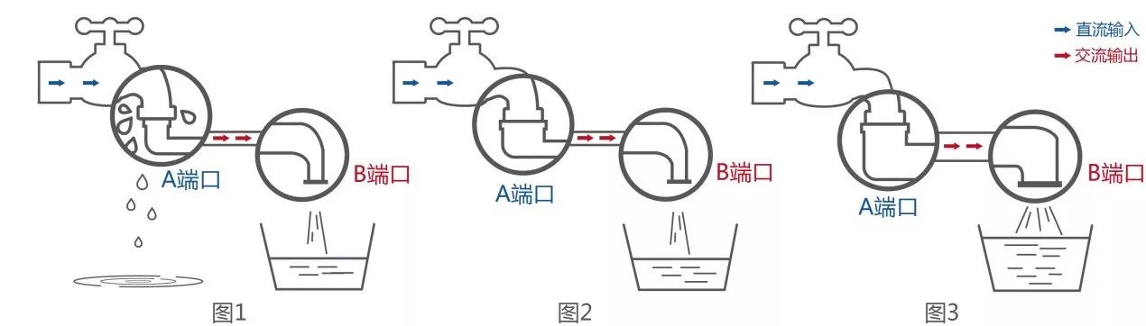 双面组件由于背面增益,直流侧输出的电流高于常规组件,这就要求逆变器的直流侧接入端和交流侧输出端的吞吐能力更强。简单来说,假设双面组件是一个水龙头,逆变器是两端畅通的管道,它的左端接入组件的直流侧,我们称之为A端口,右端是输出交流电并入电网的B端口。双面组件电流变大后意味着逆变器的A端口的口径需要加大,才能有能力“吞”进更多的直流电。否则会导致A端口出现限流问题,也就意味着双面组件增加的电流会被白白浪费掉(图1)。“吞”的能力即逆变器直流侧的接入功率能力。