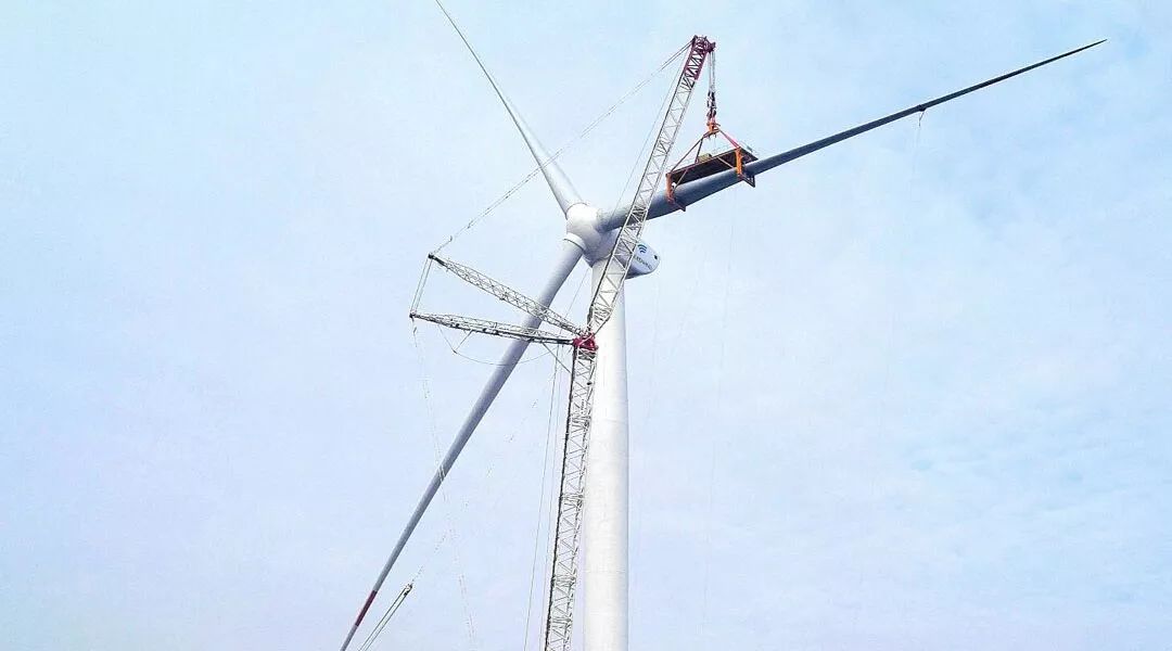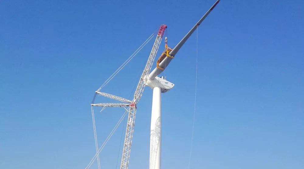 金风科技在对样机吊装的过程中,采用了单叶片吊装技术,使其成为国内采用该技术吊装的最大容量直驱永磁机组。这也是中国首次自主研发针对直驱机组的单叶片吊装技术,开创了我国风电整机商直驱机组单叶片吊装的先河。