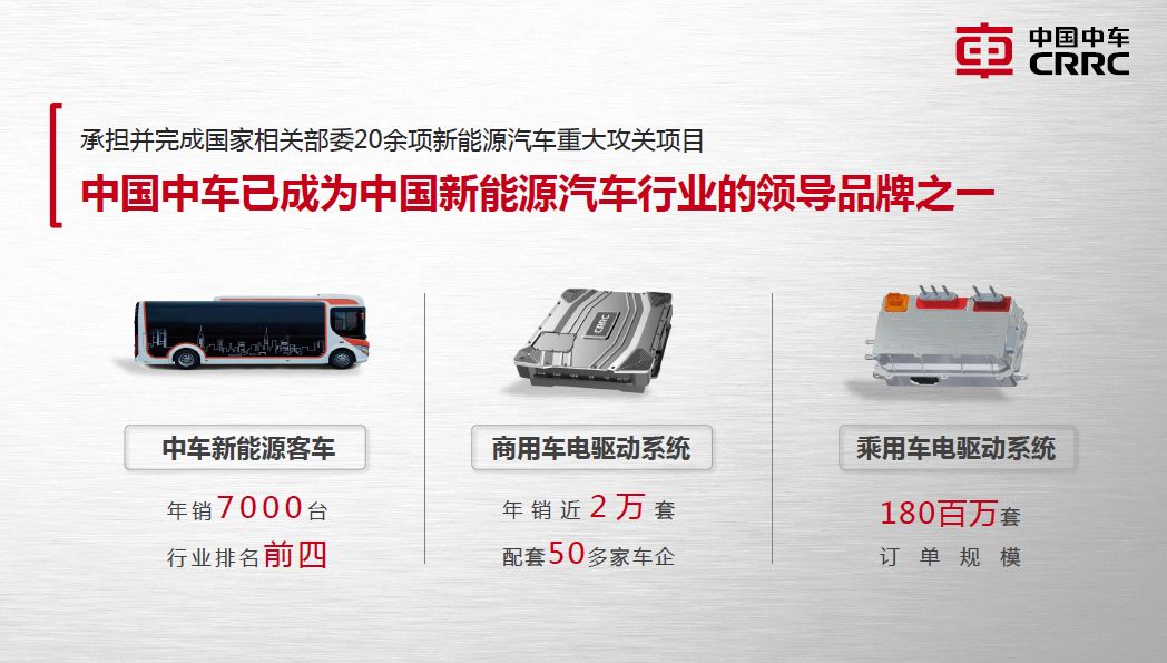 中国中车将以更大的决心和力度,立足国内,面向国际,在2025年形成销售30万辆整车、100万套电驱动系统、20Gwh储能总成的产业规模,并始终坚持以创新驱动发展,成为中国乃至全球新能源汽车核心技术的引领者,成为未来科技变革、交通变革、能源变革的推动者,为推动科技强国、质量强国、交通强国建设贡献中车力量。