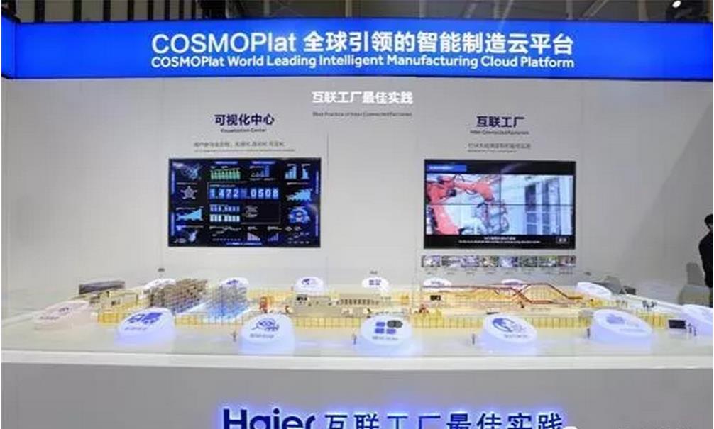 时至今日,依托全球首创工业互联网平台COSMOPlat(COSMO取自希腊语,意指“宇宙”。Plat是指“平台”),海尔走出了一条“中国智造”的发展新路——从2015年试水互联网工厂转型,两年间8个“以用户为中心、用户全流程参与定制”的互联工厂全面落地,定制占比57%,订单交付周期缩短50%,效率提升50%。而在互联工厂基础上不断升级的COSMOPlat,也于2017年正式提供社会化服务,打造“海尔互联工厂”样板。