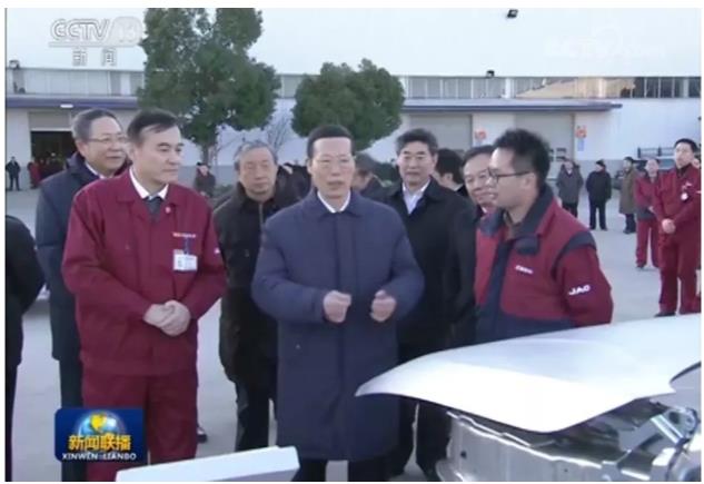 1月9日,国务院副总理张高丽莅临江淮汽车考察新能源汽车研发推广、企业创新等情况,勉励企业在创新发展、开放合作中,瞄准客户需求,把握市场机遇,赢得更大的发展空间。国务院副总理马凯,国务委员、国务院秘书长杨晶,国务院副秘书长丁向阳,国务院研究室副主任韩文秀陪同考察。