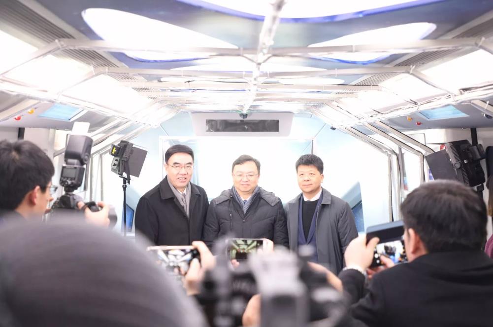 当天,正是在这列无人驾驶的云轨上,比亚迪与华为联合举办了一场别开生面的发布会,整个会场宛如外太空,让人有一种星际穿越的幻觉,而这也是全球首个空中、移动、无人驾驶发布会。尽管户外天寒地冻,云轨车厢内却分外热闹,熙熙攘攘挤满了来自全国各地的行业专家和媒体,只为一睹首列无人驾驶云轨的风采,并探究其背后的“秘密”。