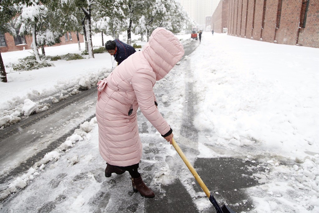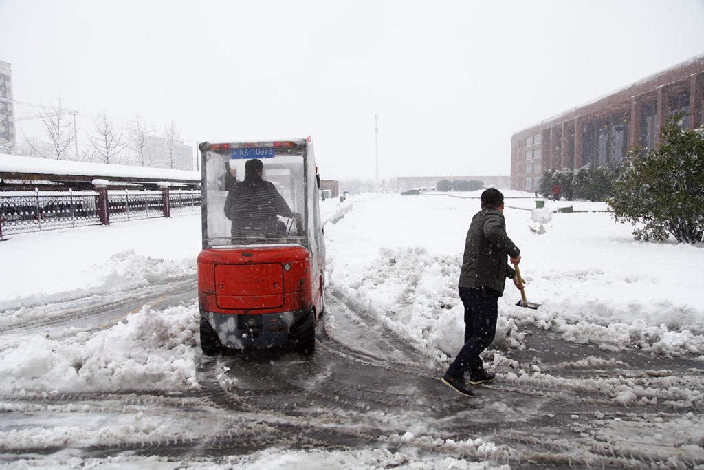 2、厂区主干道及人行道及时洒盐并清理积雪,早晚易结冰通道处设置安全警示标示,防止摔伤