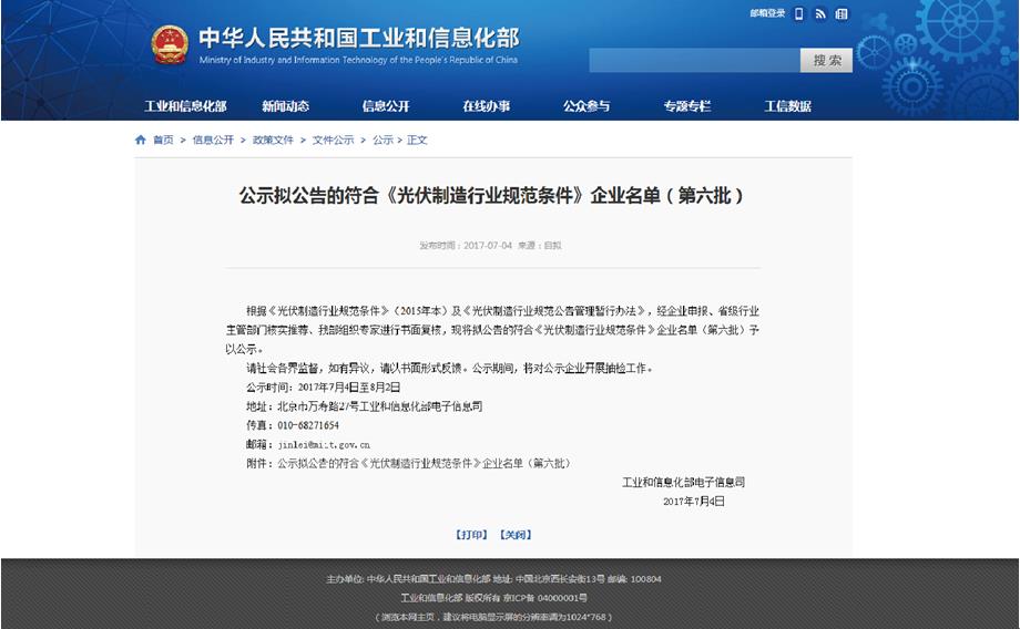 2017年10月26日 固德威列入工信部第六批企业列名