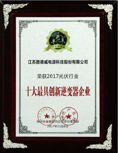 1、创新力企业50强 2、十大最具创新逆变器企业