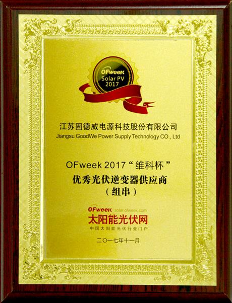 2017年11月13日 荣膺OFweek 2017“维科杯” 优秀光伏逆变器供应商(组串)