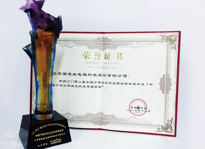 2017年12月02日 第二届全国分布式光伏应用创新金奖评选,固德威荣膺“年度中国最佳户用分布式光伏逆变器金奖”