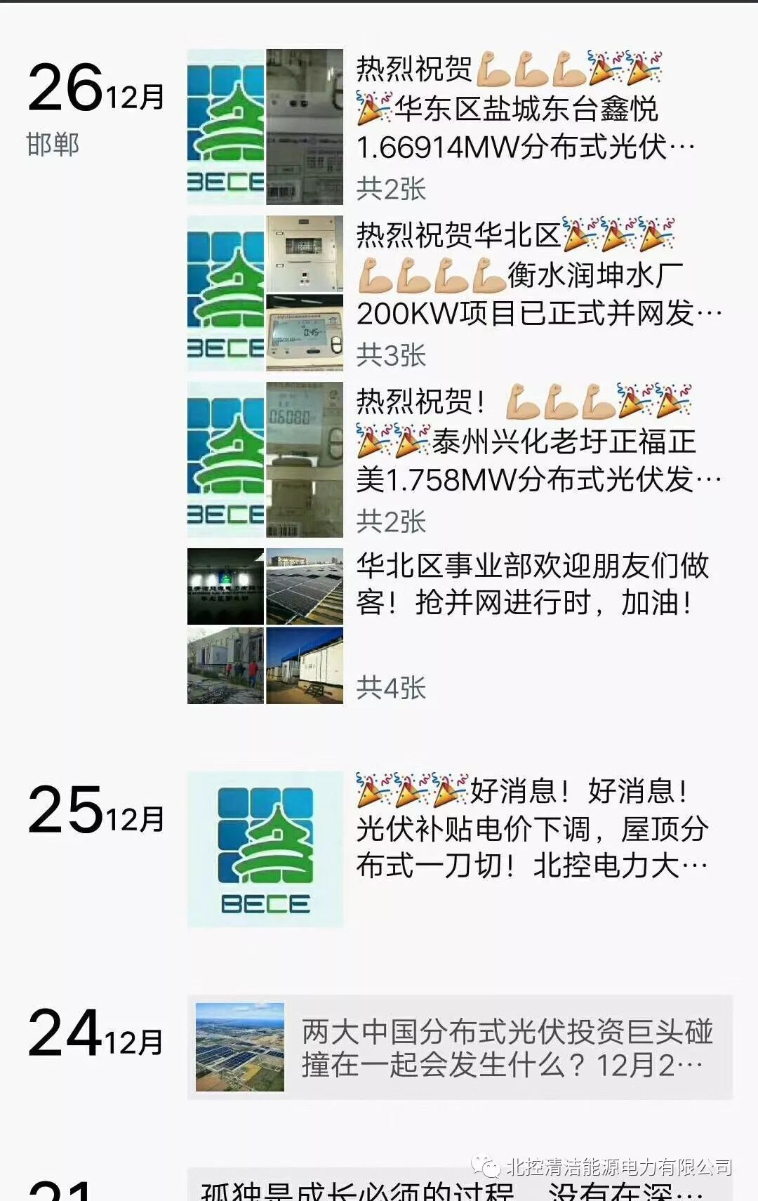 2017年12月29日,是2018年前的最后一个工作日,整个光伏界热血沸腾,活气冲天,为并网工作加班加点奋力拼搏。有的报导说,政策的变化让光伏投资者措手不及,不如这样说:无论怎样的变化,北控电力的力量一直未变,北控电力的效率一直未变,北控电力的精神一直未变。