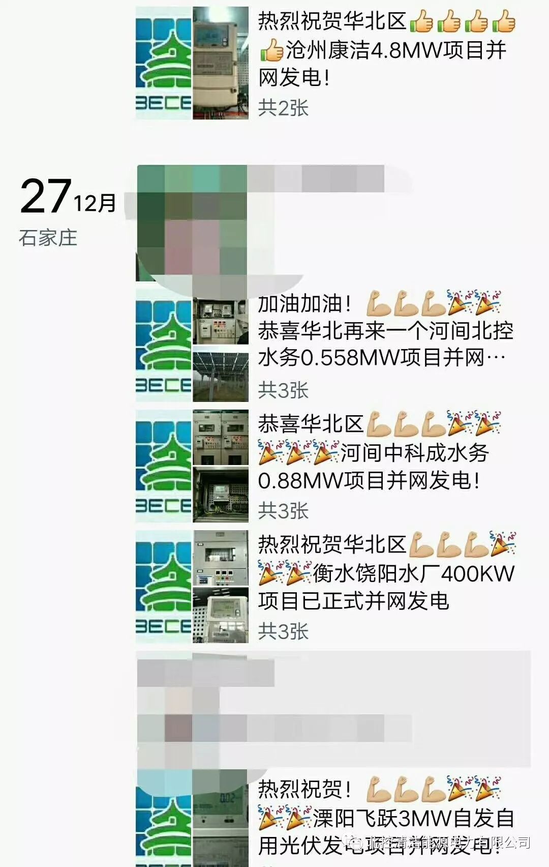 2017年12月29日由华北区域事业部投资建设的石家庄盛业光伏发电有限公司中农博远5.9MW分布式光伏发电项目、邯郸开发区农副产品物流批发市场二期10.6MW分布式光伏发电项目、沧州献县知易环保设备科技有限公司1.4MW分布式光伏发电项目、献县河北亚鑫环保设备有限公司2MW分布式光伏发电项目、河北武安保税物流中心5.67MW分布式光伏发电项目全部于当日通过电网公司验收,顺利并网发电!