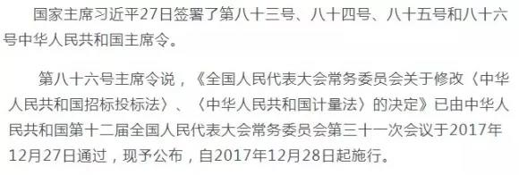 这意味着2017年9月20日改革委就修改《招标投标法》及《招标投标法实施条例》的征求意见稿,已经签署,2017年12月28日起正式施行。