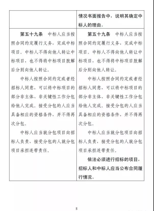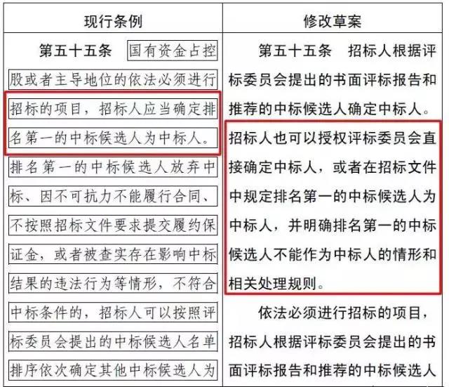 其中,最受大家关注的一点是:招标人可以直接确定中标人。该条修改前后对照如下:
