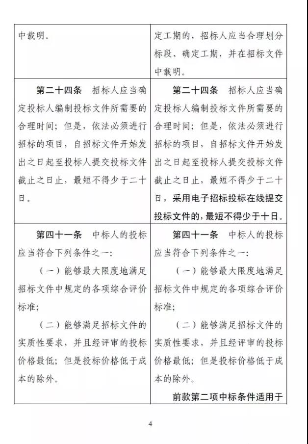 以下是《招投标法》和《招投标实施条例》修改前后对照表: