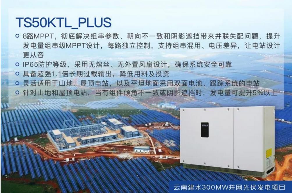 在今年首届创新领跑解决方案研讨会上,特变电工推出了国内首款8路MPPT组串式逆变器——TS50KTL_PLUS产品,可以支持组串混用,对光伏技改项目提供优势支撑,目前尚无其它厂家可以支持组串混用。