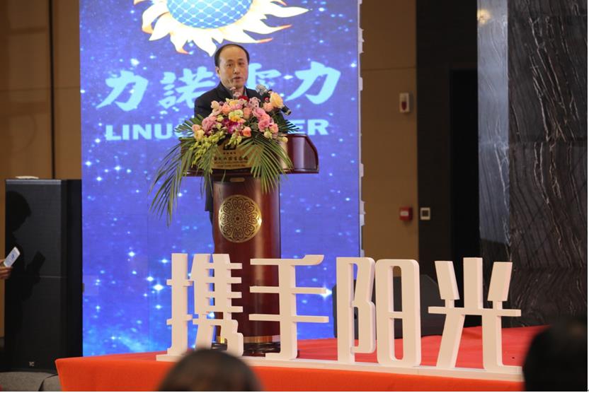 力诺电力集团董事长周广彦先生致欢迎辞,他对莅临本次会议的各位领导和来宾表示热烈的欢迎,对社会各界的关心支持表示衷心的感谢。他表示,党和政府对我国的光伏行业极为重视,十九大会议上习近平总书记关于新能源发展和精准扶贫的讲话,为我国今后的光伏行业指明了发展的方向。光伏行业协会在光伏企业发展的过程中发挥了巨大的作用,为各企业的交流提供了平台,为行业的自律树立了规范,为党和政府制定相关政策提供了依据。力诺电力成立15年以来,合作伙伴和客户以及媒体朋友基于力诺电力出众的产品品质、优良的建设施工队伍、领先的技术研发、完善的售后服务,与力诺电力相濡以沫,伴随着力诺电力不断成长。周广彦对大家的不离不弃表示感谢。