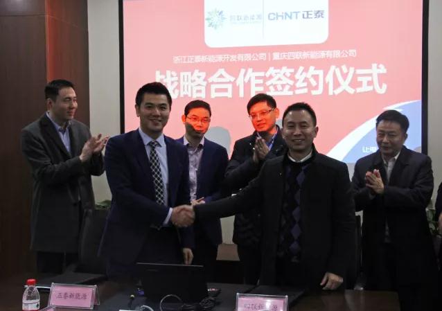 12月7日,浙江正泰新能源开发有限公司(简称“正泰新能源”)与重庆四联新能源有限公司(简称“四联新能源”)正式签订战略合作框架协议。为积极适应经济发展新常态,推动企业转型升级和持续健康发展,双方将在新能源、能源服务、金融与投资、全球化拓展等领域展开全方位合作,发挥各自在资本、项目、产品、技术、平台和运营管理等方面的经验和优势资源,实现互利共赢、携手发展。