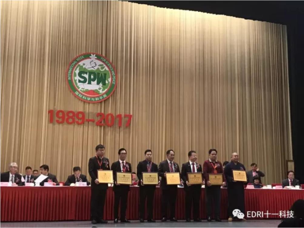 十一科技董事长、党委书记赵振元同志凭借着在新能源领域的突出贡献,凭借着对巩义、阜平等地一系列光伏扶贫的突出成绩,忠实地落实了以习近平为核心的党中央关于对精准扶贫工作的一系列指示,经过国际科学与和平周中国组织委员会严格评审,获第二十九届国际科学与和平周“和平使者”荣誉称号。11月11日,因工作原因,赵振元同志未能亲赴北京领奖,袁士伟同志代赵振元同志在北京全国政协礼堂的第二十九届国际科学与和平周开幕式上领取了“和平使者”证书及奖牌,并在会议期间与党和国家领导人亲切合影。
